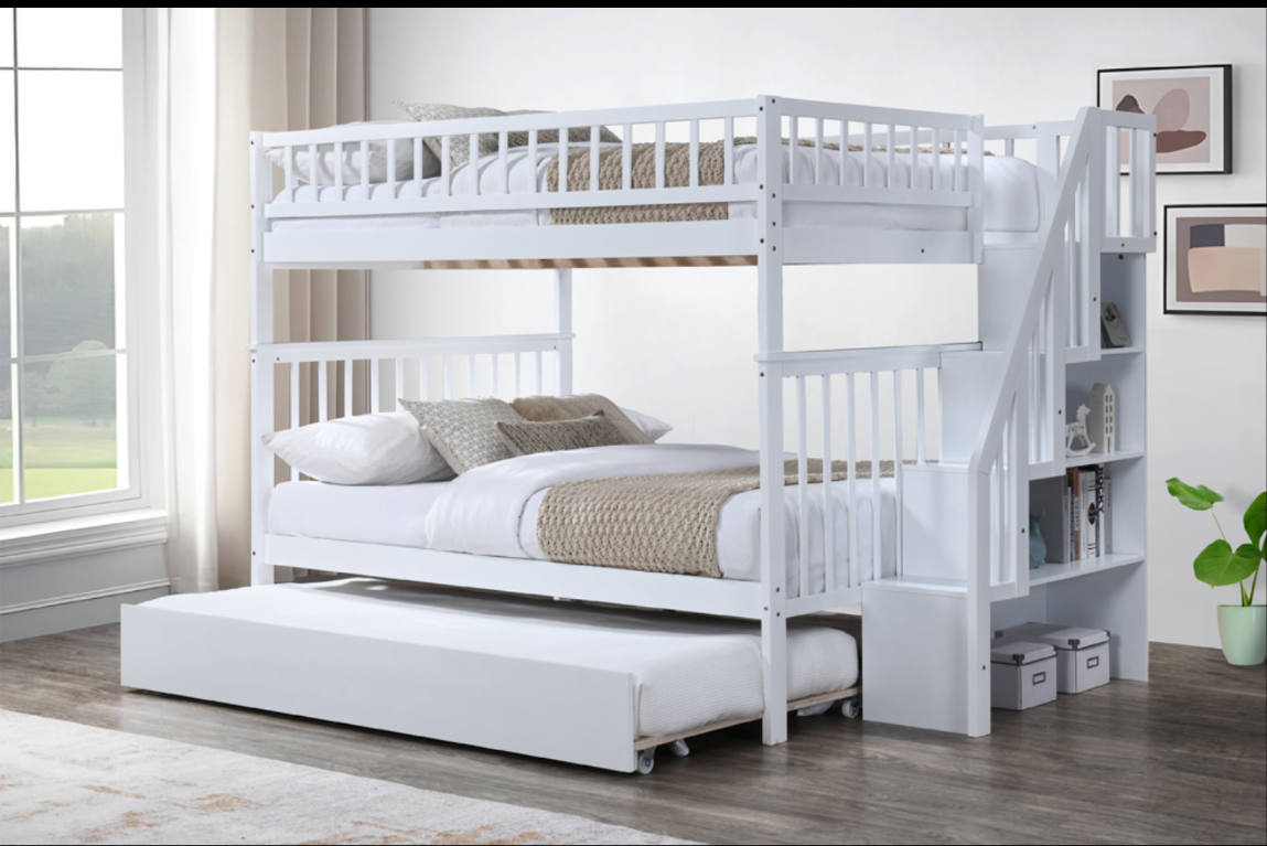 Our Double Over Double Bunk Bed with Trundle is the ultimate bedroom solution, offering a wealth of features to enhance your child’s sleeping space.