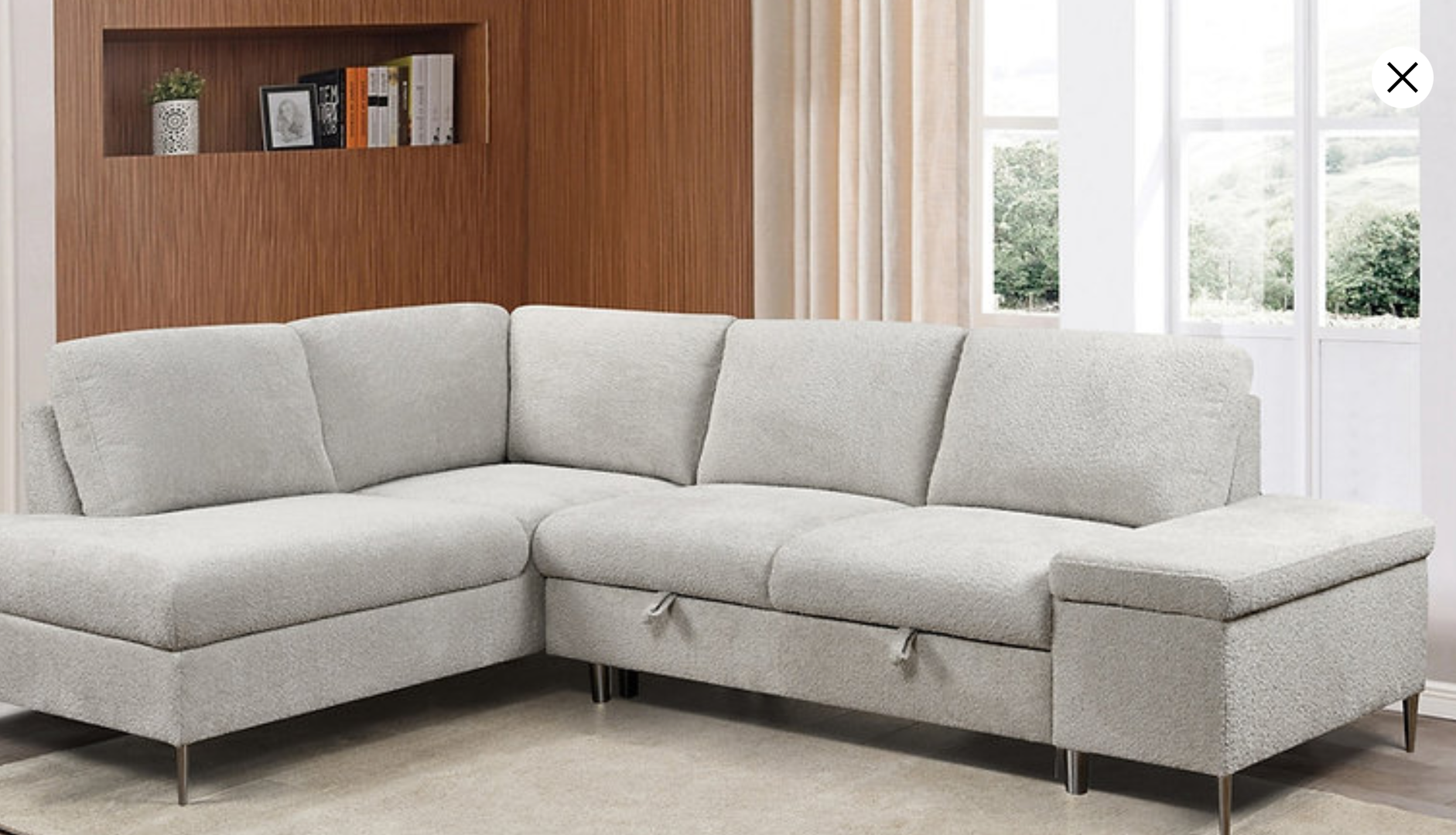 IF-9023 LHF (Boucle Fab) sofalit sectioonel Dimensions IF-9023 LHF Sofa Bed Sectional 104"L 76"W 34"H  Description Left Hand Facing Chaise Large Lift-Up Storage Bench Compartment Opens to a Bed Soft Grey Boucle Fabric